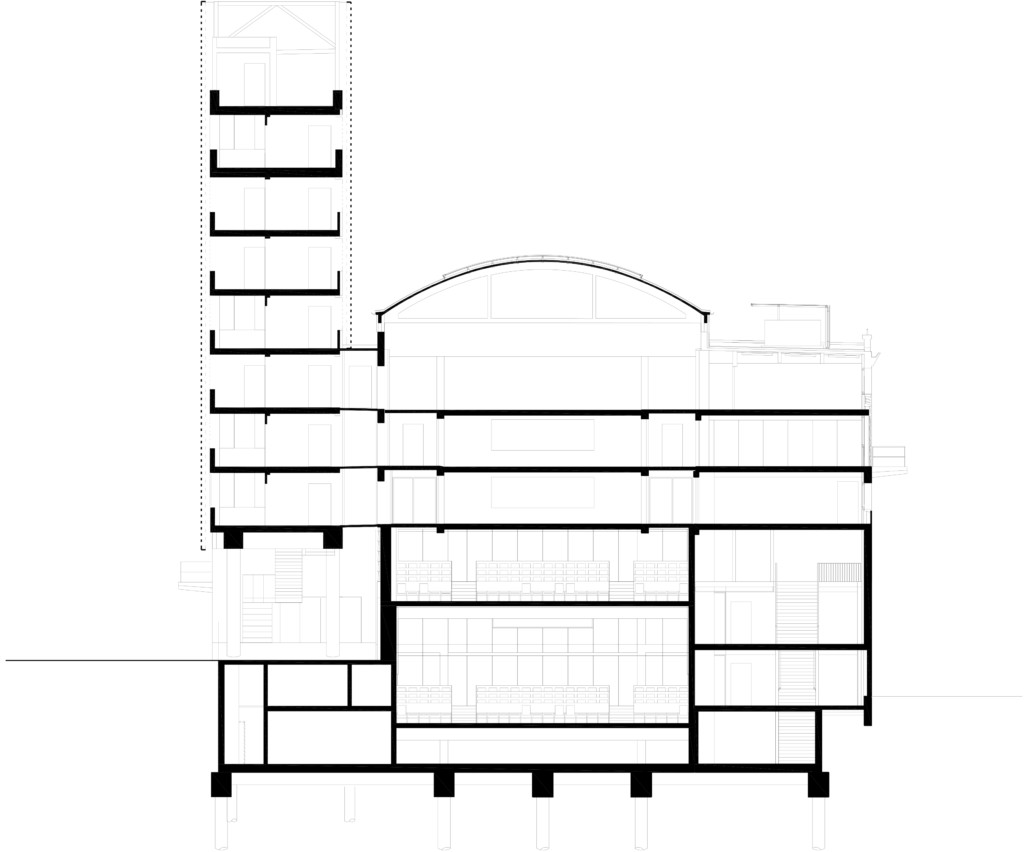 Réhabilitation lourde d’un bâtiment inscrit MH pour accueillir différents éléments de programmes :