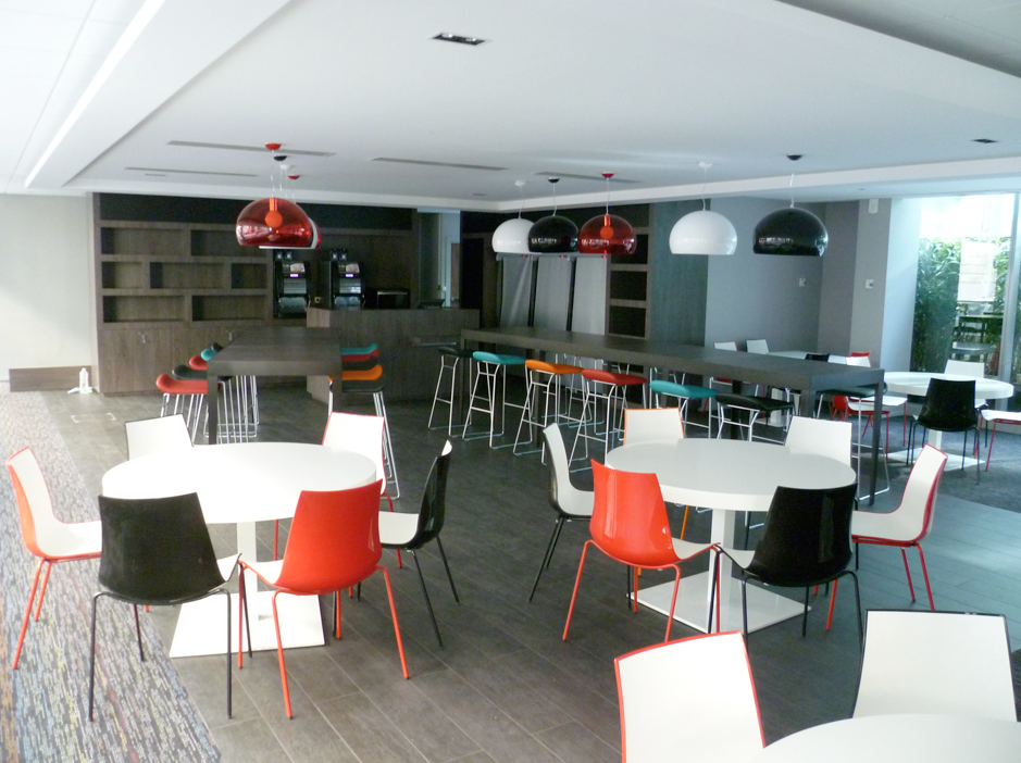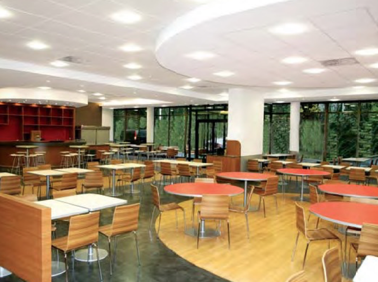 - Traitement acoustique de l’atrium principale et de la cafétéria